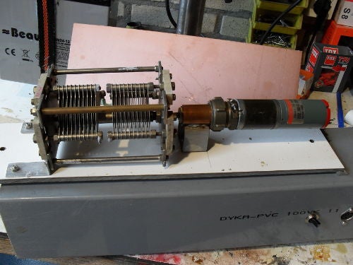 Als er op 80 meter word afgestemd staat de condensator ongeveer op de helfd, dus hier kan ook een 500pf gebruikt worden.