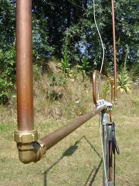 De coax gewoon even zolang aan de koperen buis gesoldeerd, van de lus.